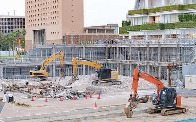 木造住宅からビル・マンション・商業施設、鉄筋コンクリート造の大型建物まであらゆる建造物の解体工事を承ります。 近隣にお住まいの皆様への配慮に細心の注意を払い、解体から搬出・処分までスムーズな作業を心がけています。